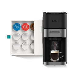 Эта кофеварка предлагает высокую универсальность, позволяя использовать молотый кофе, капсулы Dolce Gusto, Nespresso, ESE и Senseo. Благодаря съемному резервуару для воды объемом 700 мл, вы можете приготовить несколько чашек кофе без необходимости частого долива воды.