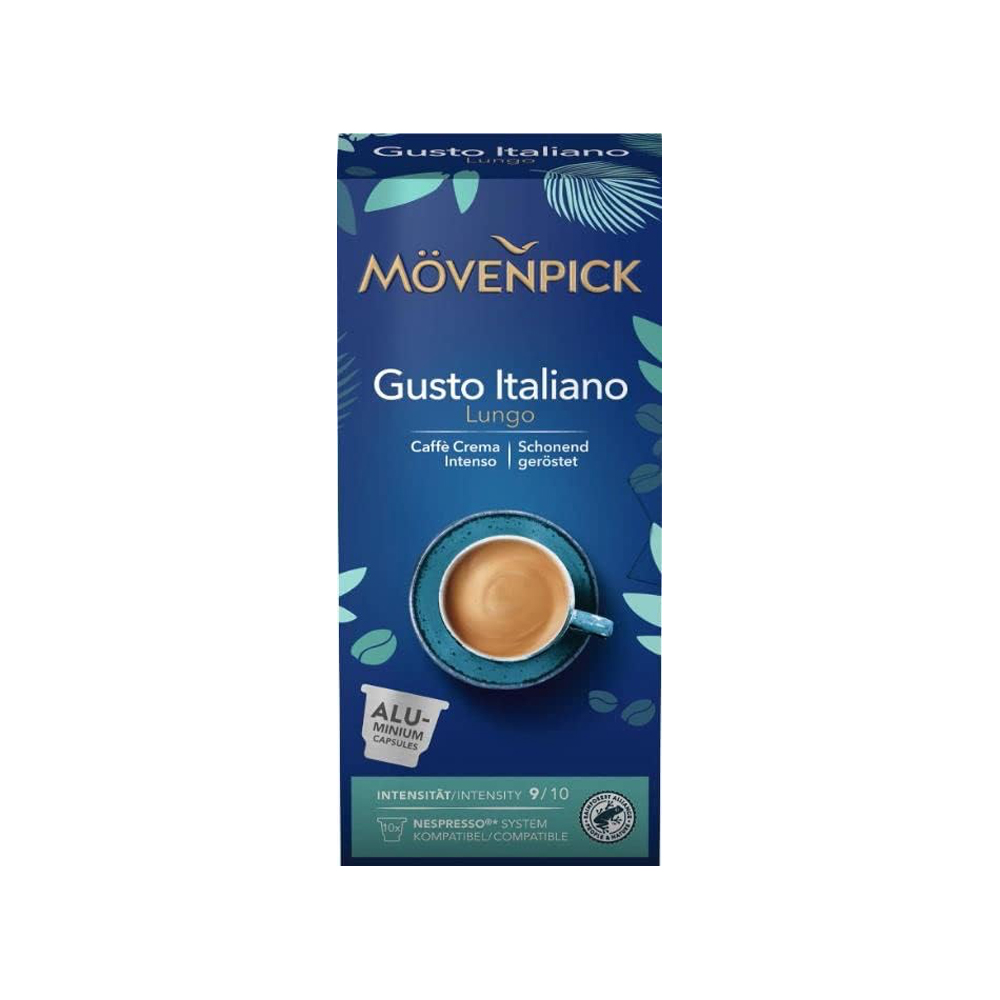 Попробуйте Movenpick Gusto Italiano Lungo (10 шт.) и насладитесь аутентичным вкусом, вдохновленным итальянским образом жизни. Mövenpick Lungo Crema Gusto Italiano означает максимальное наслаждение от кофе, удивляя своей изысканной смесью.