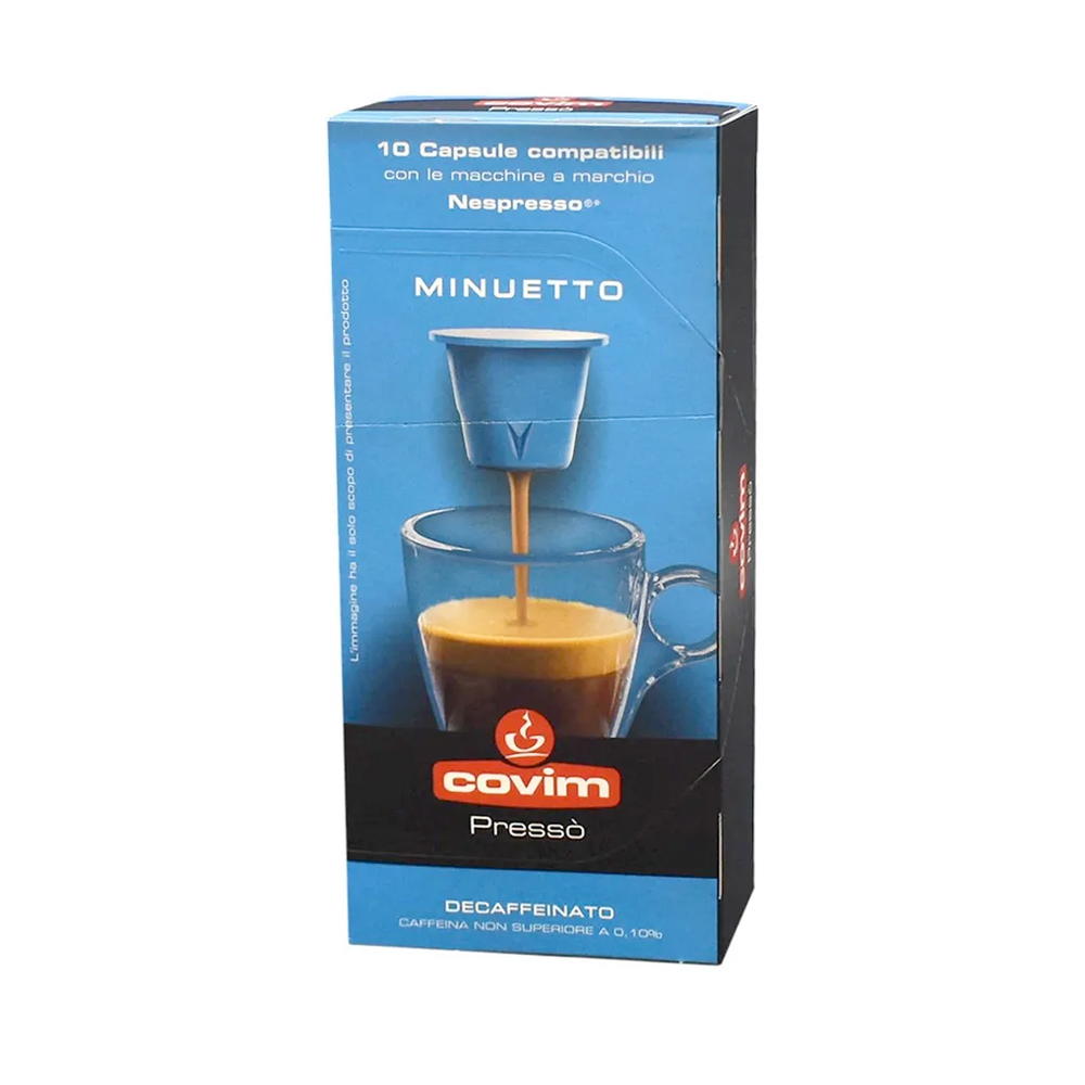 Капсулы Covim Minuetto совместимы с кофемашинами Nespresso Original, обеспечивая удобство и простоту приготовления. Закажите кофе Covim Minuetto, чтобы открыть для себя новый уровень кофейного удовольствия.