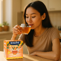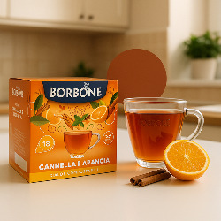 Borbone Tisana Arancia e Cannella – капсульный чай с апельсином и корицей. Натуральный состав без сахара и усилителей вкуса. Простое приготовление при помощи рожковой кофемашины.