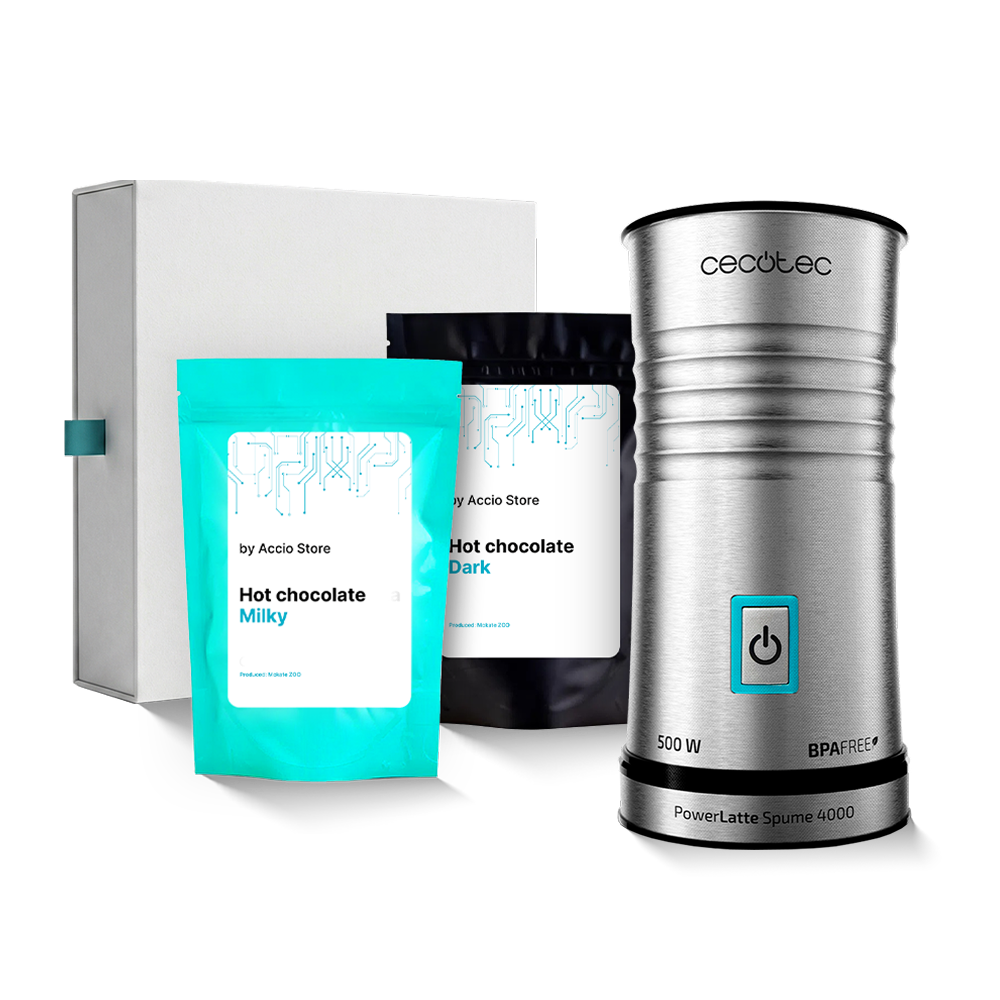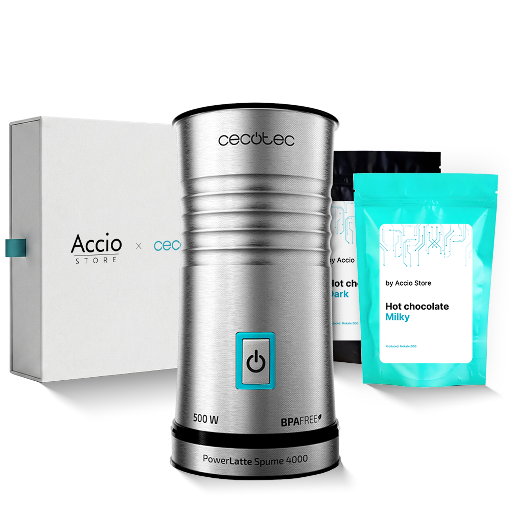 Компактный помощник для приготовления воздушной и нежной пенки дома. Три режима работы позволяют делать горячую и холодную пену, а также просто подогревать молоко. Удобная чаша с антипригарным покрытием и автоматическое отключение делают использование безопасным и комфортным. В подарок к капучинатору дарим набор Accio Store с горячим шоколадом и сливками.