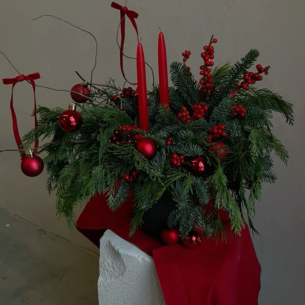 - Свечи декоративные, глянцевые, красного цвета — 2 шт.