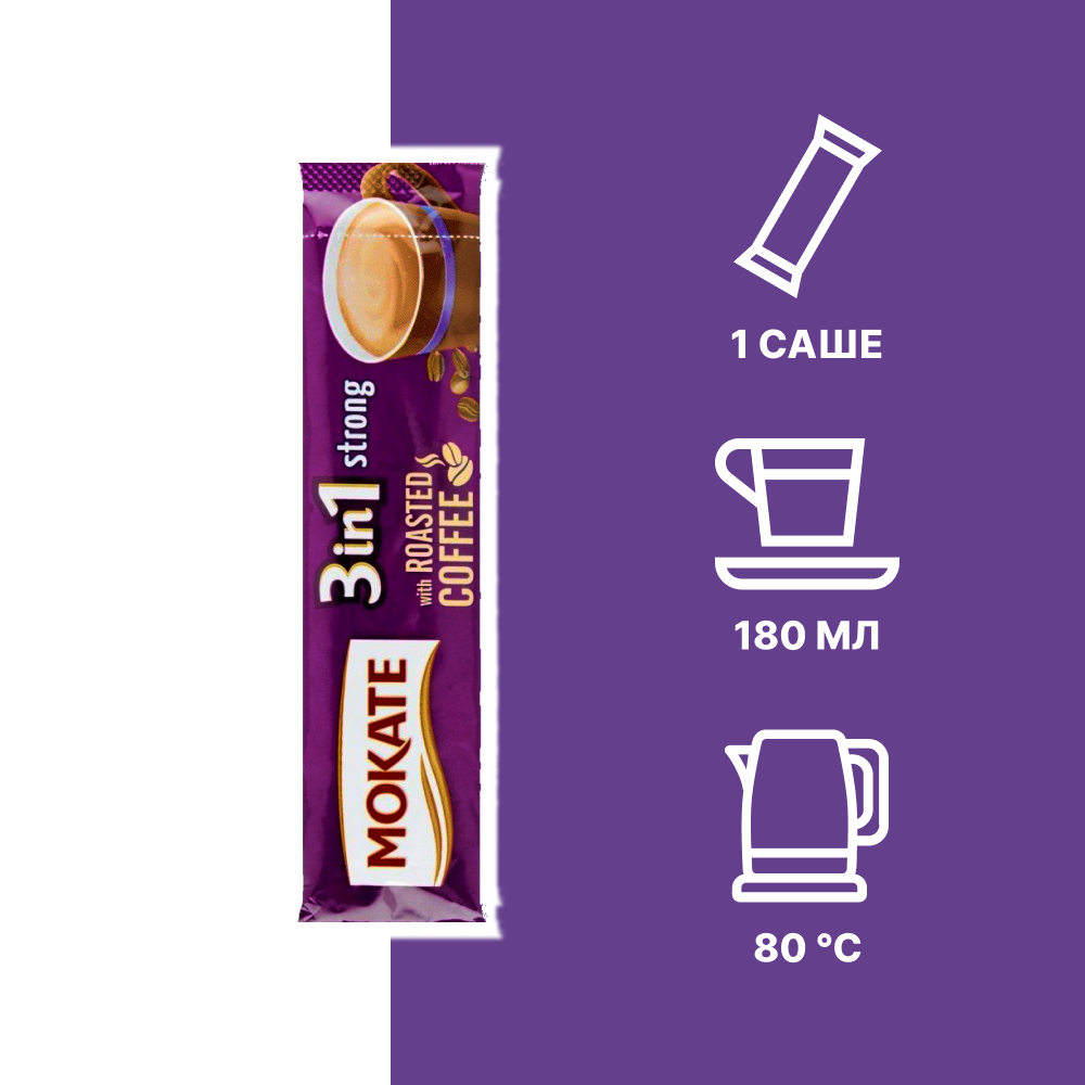 Купить Mokate Strong 3 в 1 можно в Алматы и Астане, а также по всей территории Казахстана. Mokate кофе отличается высоким качеством и доступной ценой, что делает его популярным выбором среди любителей кофе. Оцените удобство и простоту приготовления: просто добавьте горячую воду и наслаждайтесь напитком.
