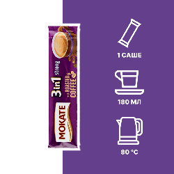 Кофе 3 в 1 Mokate Strong — это идеальный выбор для тех, кто ценит насыщенный и крепкий кофейный напиток. Это гармоничное сочетание растворимого кофе, молока и нежной сладости, создающее классический и выразительный вкус, который будет радовать каждого любителя кофе.