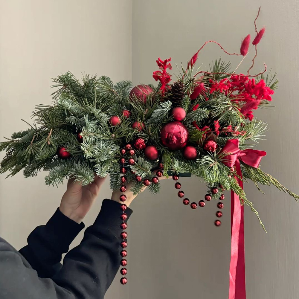 Современная праздничная композиция с акцентом на текстуры и лёгкое сияние. Добавляет живость, свежесть и мягкую праздничность в любой интерьер.